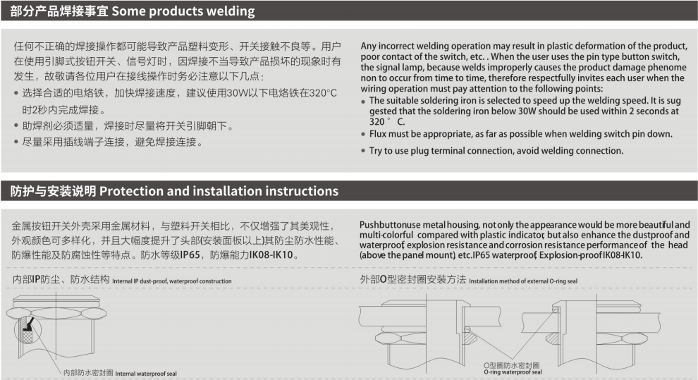 HBGQ系列微行程金属按钮安装孔径涵盖Φ10、Φ12、Φ16、Φ19、Φ22、Φ25、Φ30mm,产品内置优质轻触开关,手感回馈明显,按压声音清脆,开关性能稳定。带灯部分使用无极LED贴片灯珠(接线无正负极区分),亮度高且寿命长,是小型电器的首选开关。